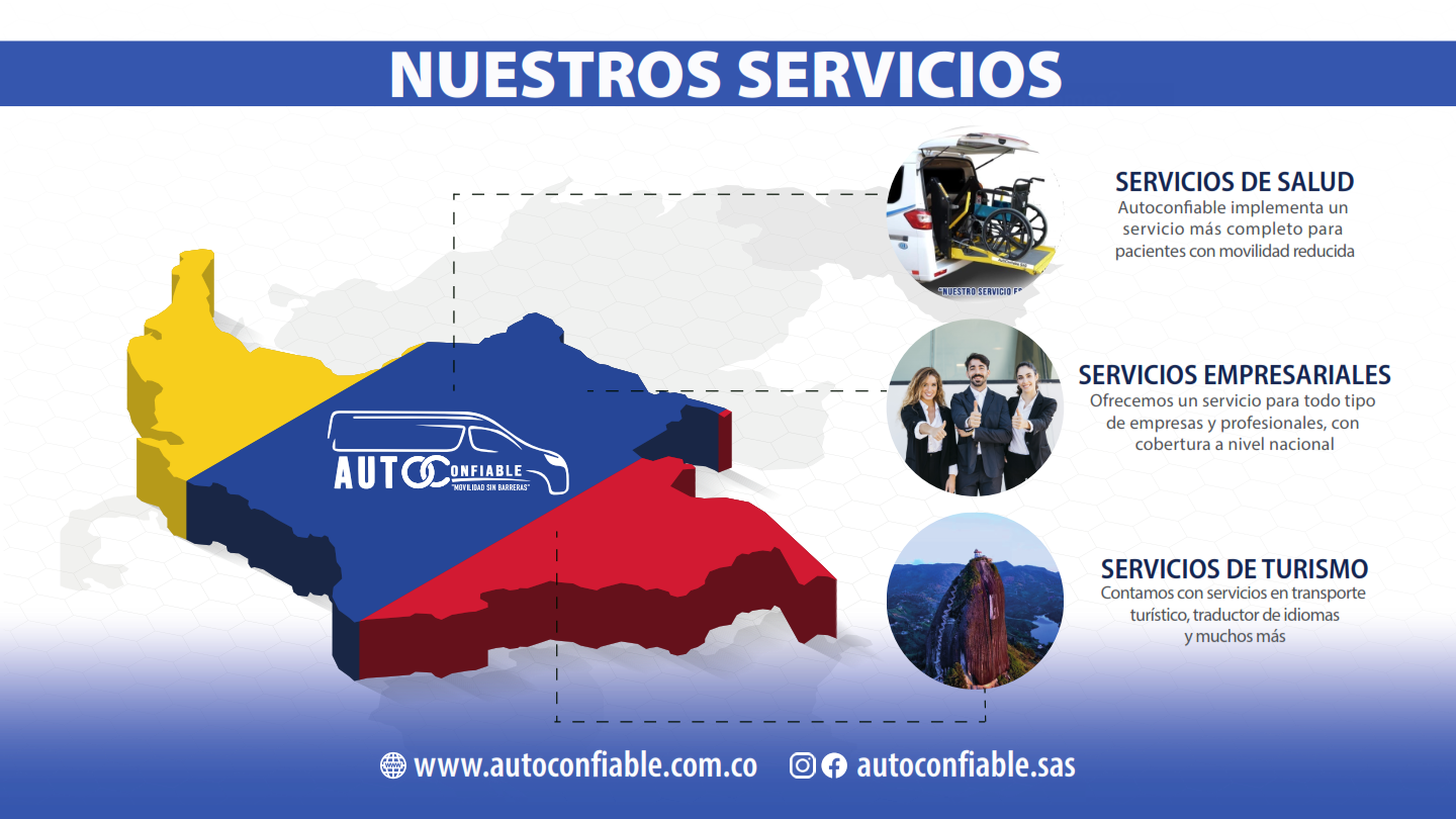 Prestamos servicio de transporte ejecutivo, empresarial, turistico, personalizado de acuerdo a las necesidades de los usuarios. Ademas contamos con transporte especial para personas con algun tipo de movilidad reducida con vehiculos equipados con tecnologia accesible.